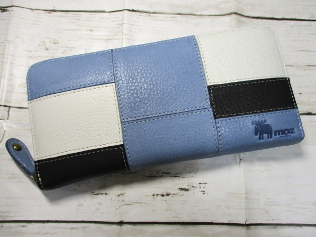 - 新品 財布 レディース 長財布 ラウンド moz モズ ブランド 本革 牛革 パッチワーク ブルー