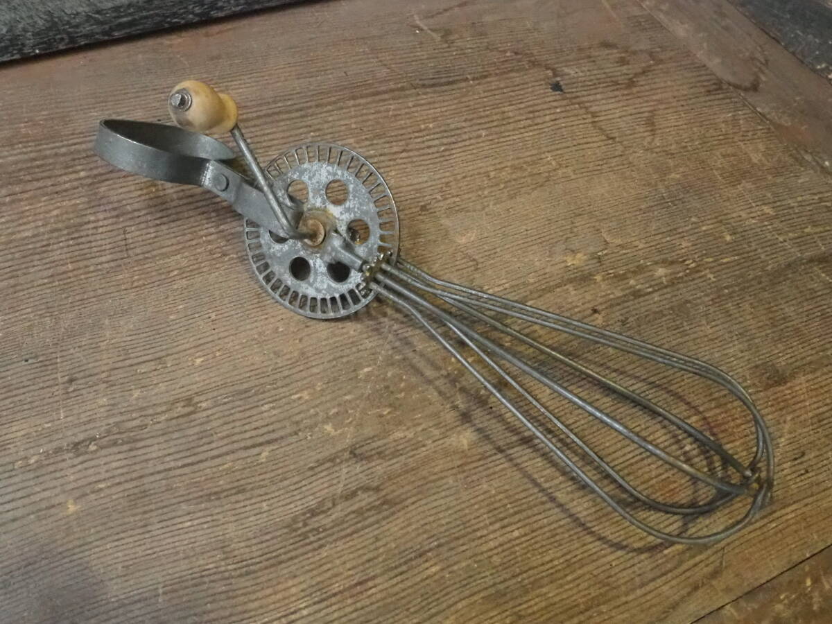 - 【フランス蚤の市ハンドミキサー】実用可能アイアン鉄製キッチンケーキ手回し古道具アンティークインテリアインダストリアル骨董