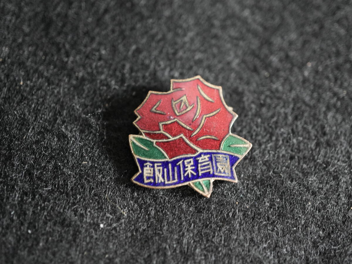 - 即決あり 昭和レトロ 長野県 飯山保育園 薔薇の校章 バッチ バッジ 記章 徽章 ブローチ 花柄 バラ 七宝焼き メダル
