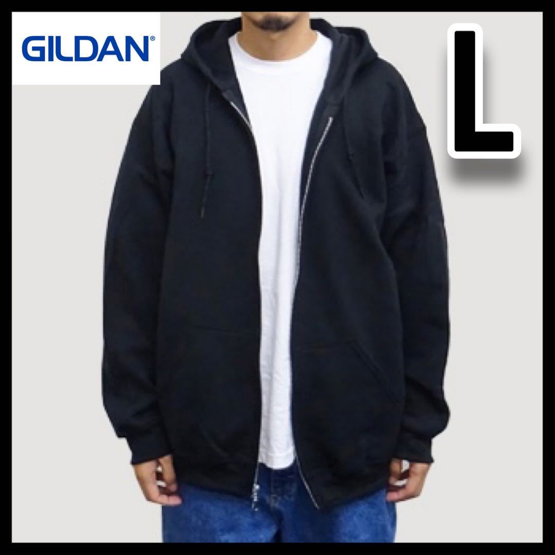 - 新品未使用 GILDAN ギルダン 8oz 無地 ジップアップパーカー 裏起毛 黒 L サイズ ビッグシルエット フーディー