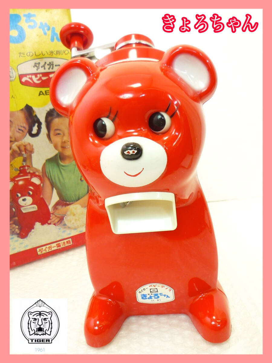 - タイガー TIGER ベビーアイス きょろちゃん 赤 レッド かき氷器 ビンテージ 昭和レトロ 1970年代 楽しい氷削り くま 手動 必見 保管品