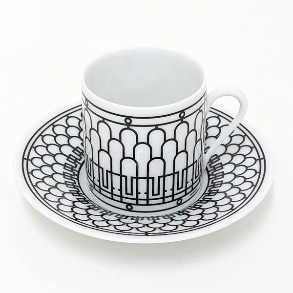 - エルメス HERMES コーヒーカップ アンド ソーサー Hデコ アールデコ シルクスクリーンプリント ポーセリン 未使用品