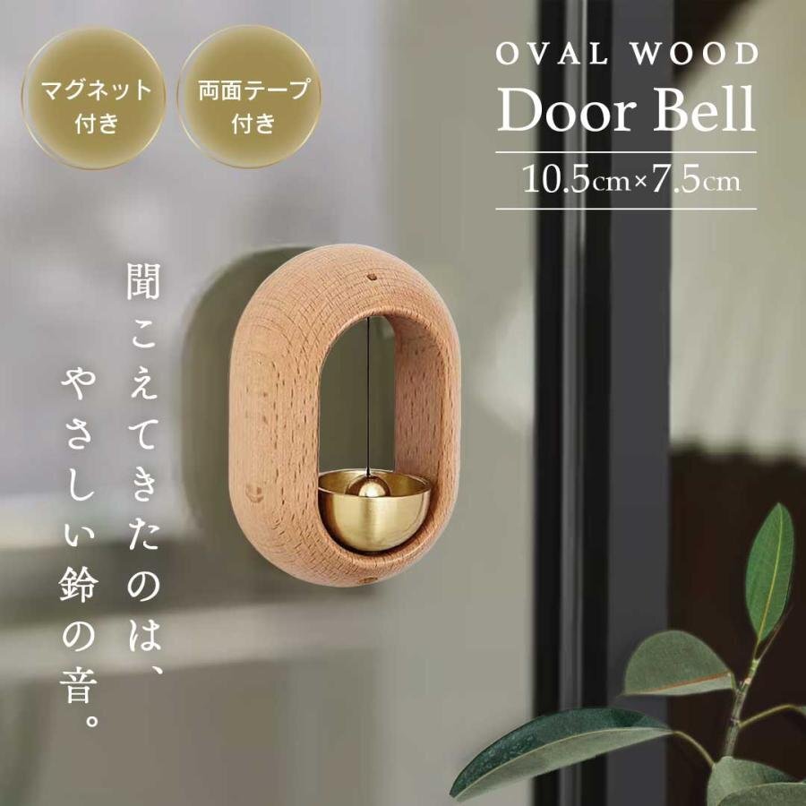 > ドアベル 木製 ドアチャイム ーVer2ー 丸 ベージュ 10.5×7.5 マグネット式 丸型 玄関チャイム 呼び鈴 ウッド調 マグネット 無垢材