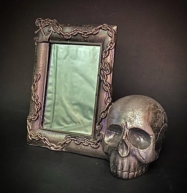 - スカル ドクロ 骸骨 置物 ミラー(鏡)付き