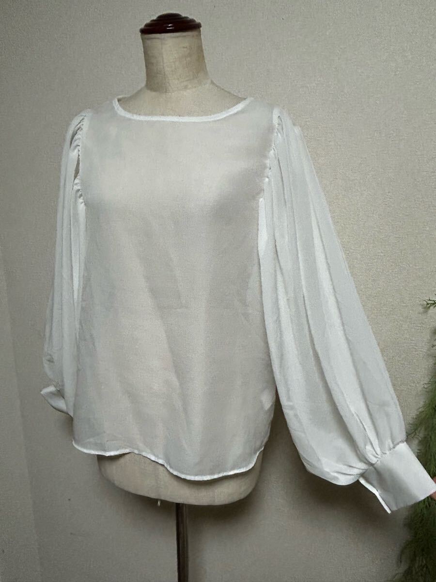 - 新品【Melan Cleuge★メランクルージュ】プルオーバーブラウス・バルーン袖・薄手・透け感あり・Fサイズ