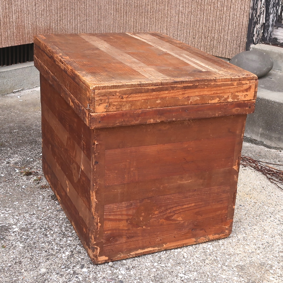 - レトロ 茶箱 木箱 木製 ブリキ貼り 収納箱 保管箱 衣装箱 昭和 ビンテージ アンティーク 古道具 古民家 15
