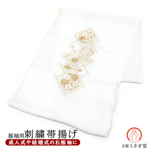 - 帯揚げ 振袖用 正絹 刺繍 oa-050 白 ホワイト ちりめん生地 成人式 結婚式 卒業式 お洒落着物 和装