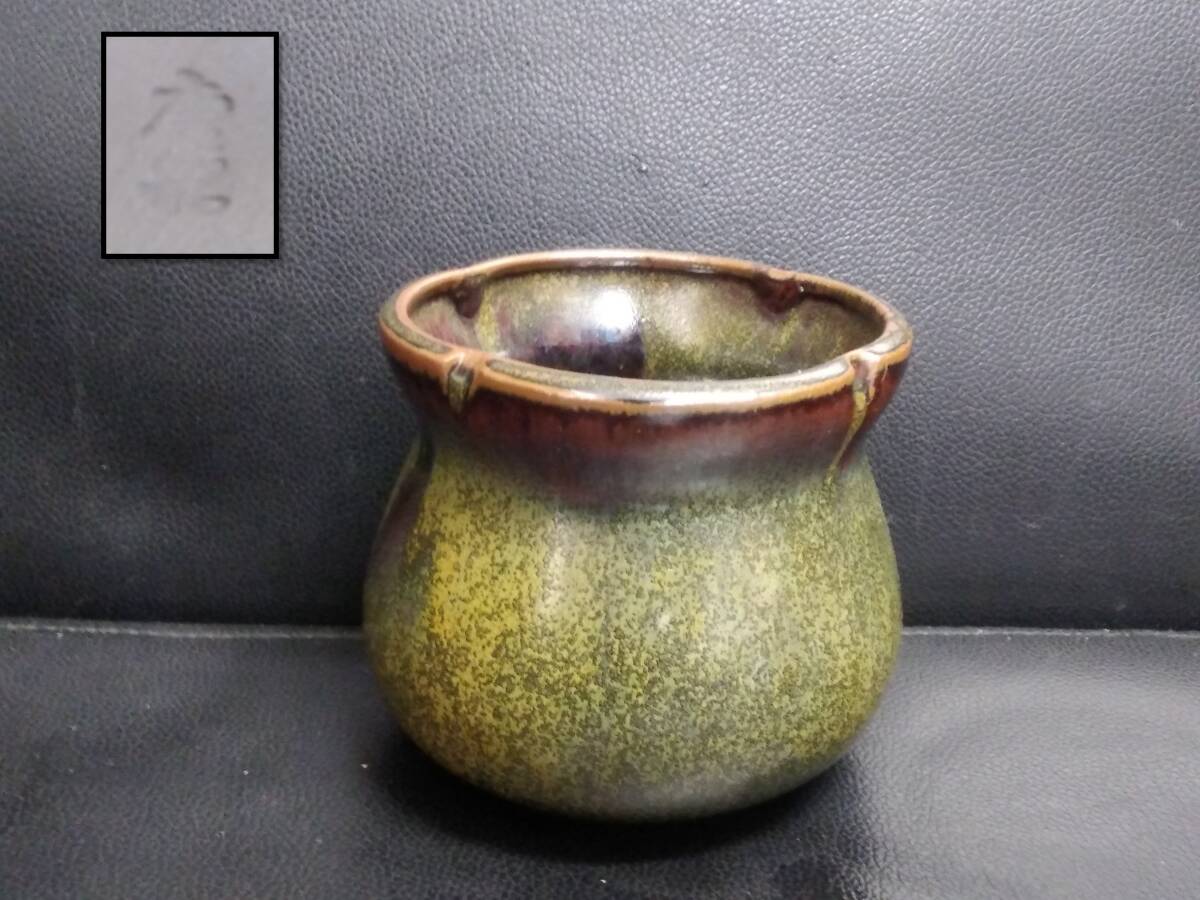 - 《食器》茶器「銘有(唐船?庵船?):建水」 高さ:約9.5cm・口内径:約9cm 茶道具 陶磁器