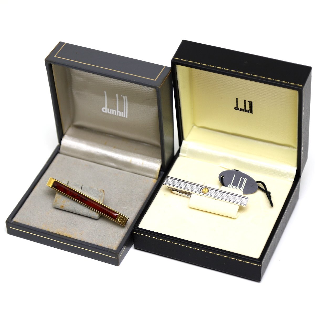 - 中古品 ダンヒル ネクタイピン 2点セット Dロゴ シルバー ブラウン ラッカー仕上げ GP