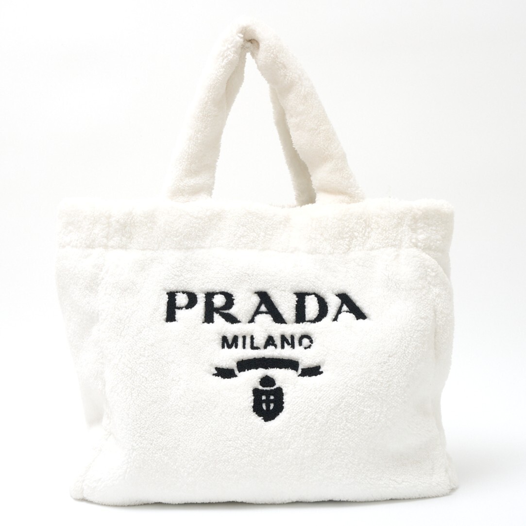 > PRADA プラダ シアリング トートバッグ ハンドBAG ナイロン×サフィアーノレザー ホワイト×ブラック×シルバー金具 カジュアル レディース