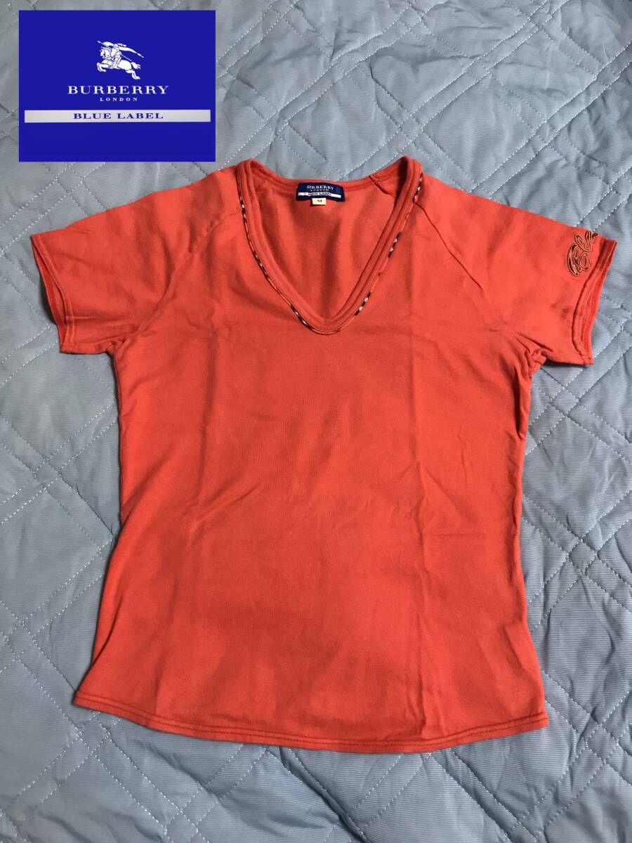 - バーバリーブルーレーベル オレンジピンクVネック半袖カットソー M t173