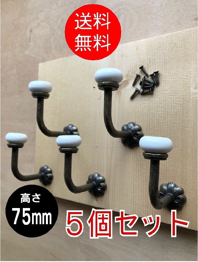 > 【5個セット】壁掛けフック 金具 高さ75mm FU-08■アンティーク ブロンズ 帽子 おしゃれ 洋服 ヨーロッパ 古民家 ヨーロピアン レトロ