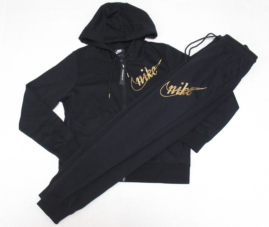 > NIKE スエット グリッター パーカー パンツ セットアップ 黒 金 L ナイキ ジップフーディ 上下セット メタリック BV4557-010 BV4529-010