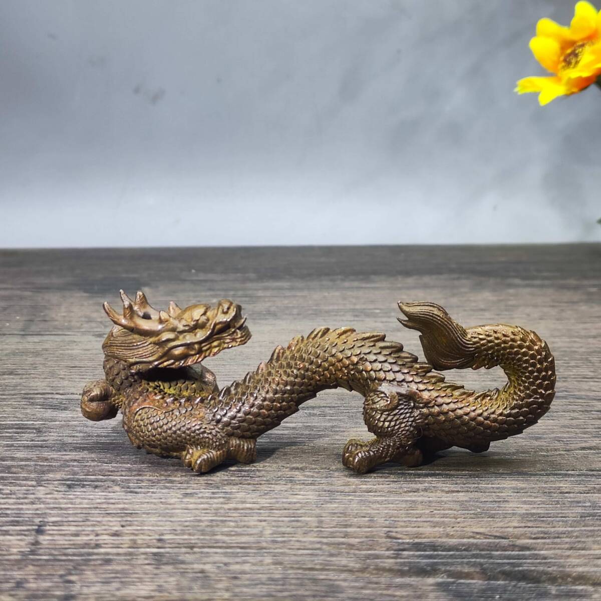 - 清 古銅彫 回龍 龍擺件 置物 極細工 古賞物 古美味 東洋彫刻 時代物 骨董 中国古美術