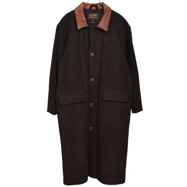 - デザイン◎ 美品! 80s USA製 Eddie Bauer レザーカラー ウール コート ヴィンテージ 黒タグ 革 アウトドア ハンティング