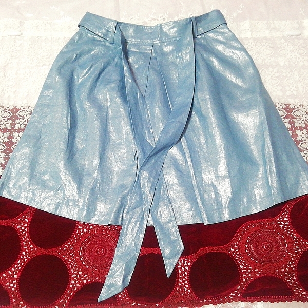 > 麻リネン100%光沢デニム腰ひもフレアミニスカート 100% linen glossy denim flare mini skirt with string waist