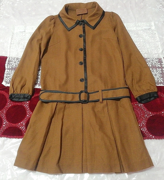 - キャラメルブラウン制服ウール100%チュニックワンピースネグリジェ Caramel brown uniform 100% wool tunic dress negligee