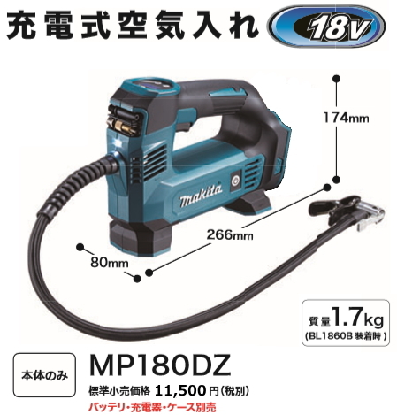 - マキタ 充電式 空気入れ MP180DZ 18V 本体のみ 新品