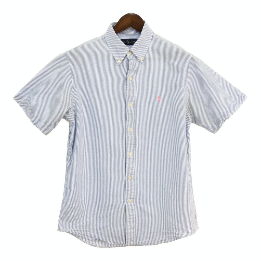 - RALPH LAUREN ラルフローレン ボタンダウン 半袖シャツ ストライプ ライトブルー(メンズ M)中古 古着 T5840