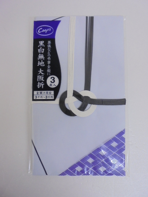 - 【KCM】□1pbg-191#3★未使用品★マルアイ 仏金封 黒白斜折7本 3枚入 P3キ-CK310 黒白無地 大阪折 弔事全般