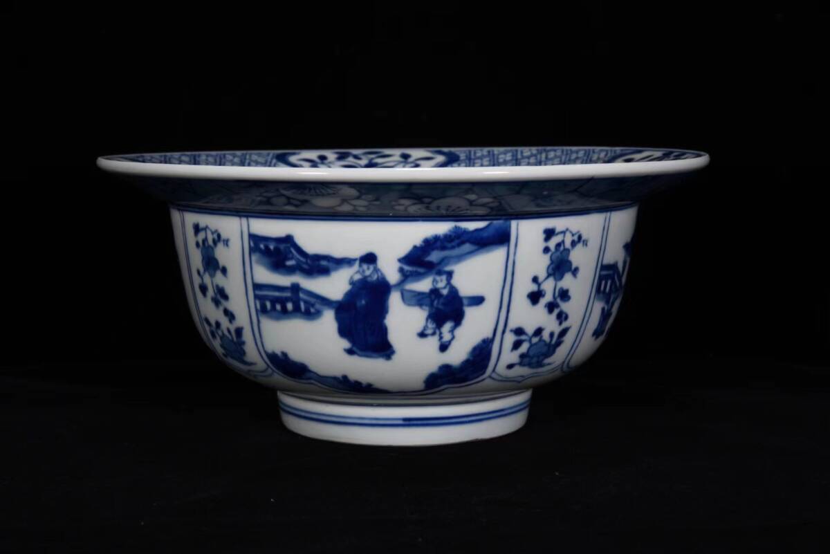 - 『館蔵珍品 清 康熙年製款 古陶瓷品 青花 人物紋 折沿碗』置物 賞物 貴重物品 収蔵品 中国古美術