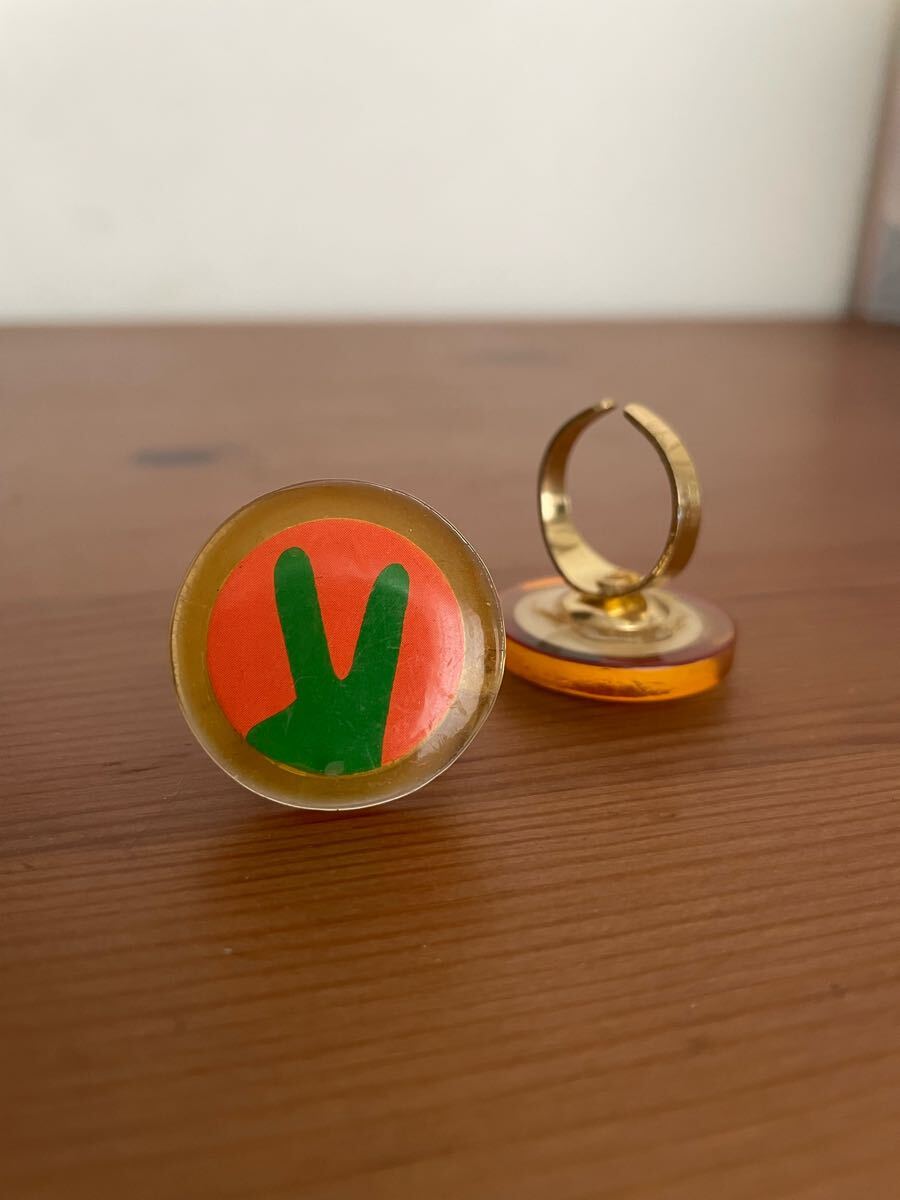 - 指輪 ピースマーク レトロ ポップ カラフル 昭和 ヴィンテージ アクセサリー 原宿系 個性派 リング コレクション 派手 フリーサイズ アート