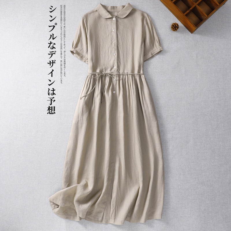 - 新入荷 ロングワンピース 綿麻ワンピース シャツワンピース ワンピース レディース 夏 リネン 半袖 ゆったり ロング丈 麻色お色選択可