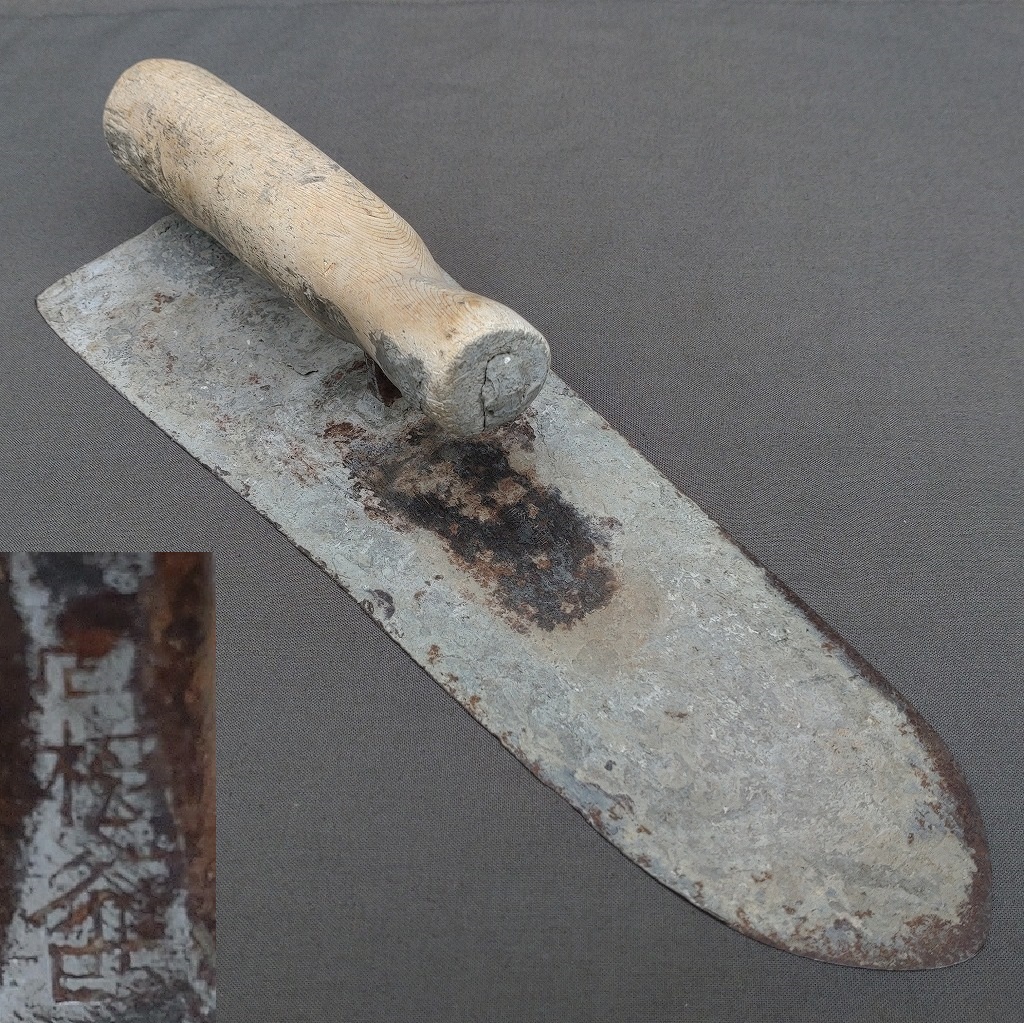 - 左官鏝 高松 山西 鏝の長さ約314㎜ 最大幅約107㎜ こて コテ 古鏝 左官道具 日本製 【3869T11】