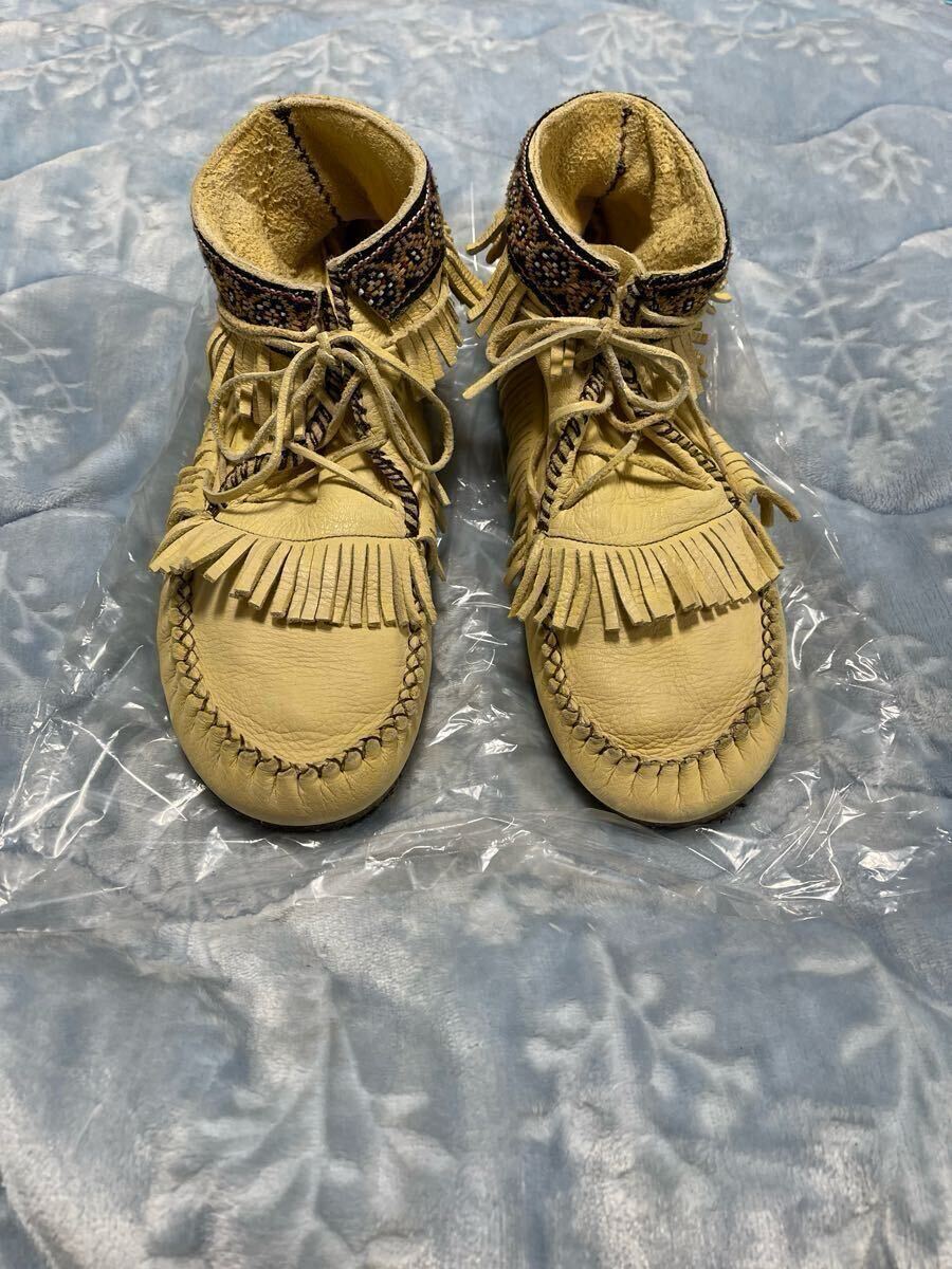 > 【即決】【良品】 NUMBER NINE ナンバーナイン フリンジブーツ モカシン 靴 くつ ベージュ色 即決早い者勝ち