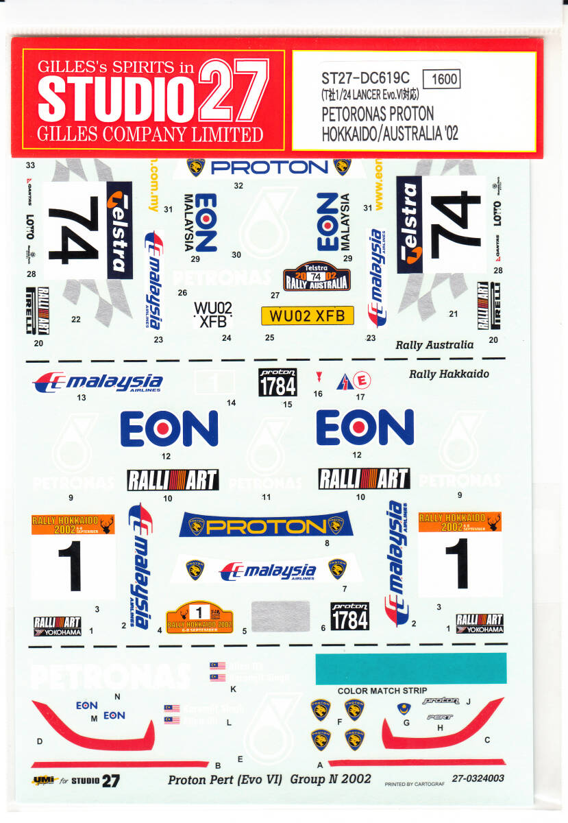 > ★Studio27デカール ST27-DC619C Proton(三菱ランサーEVO.6) "PETRONAS" 北海道/オーストラリア2002 ★