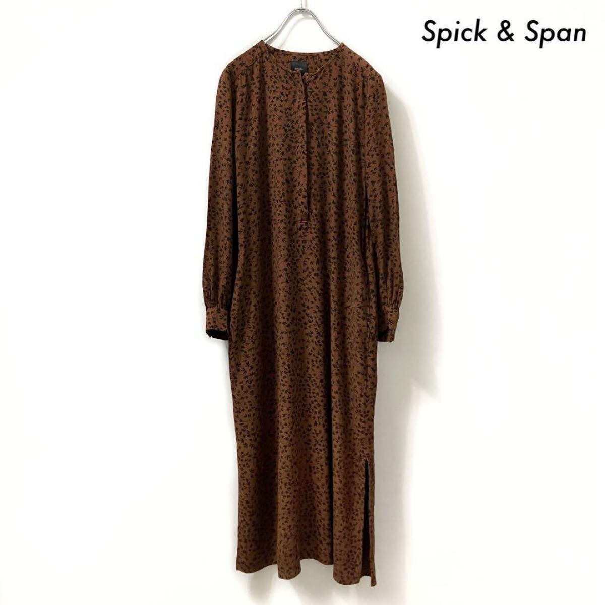 - 【送料無料】Spick & Span スピック&スパン★小花柄 長袖ワンピース ブラウン 茶色