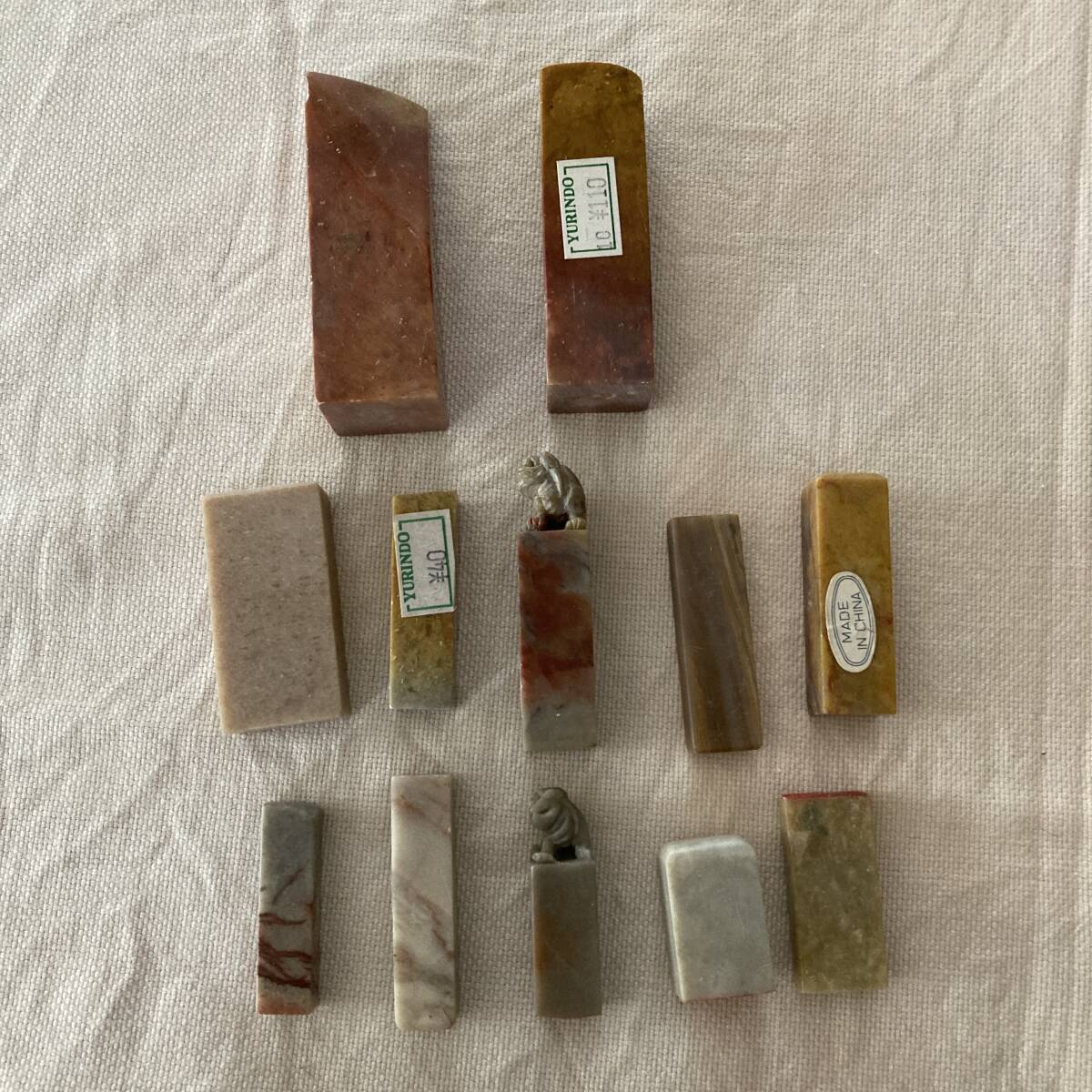- 中国印材 印材 印鑑材料②12本セット 獅子2本(高さ約6㎝+約4.3cm)を含む 自宅保管品