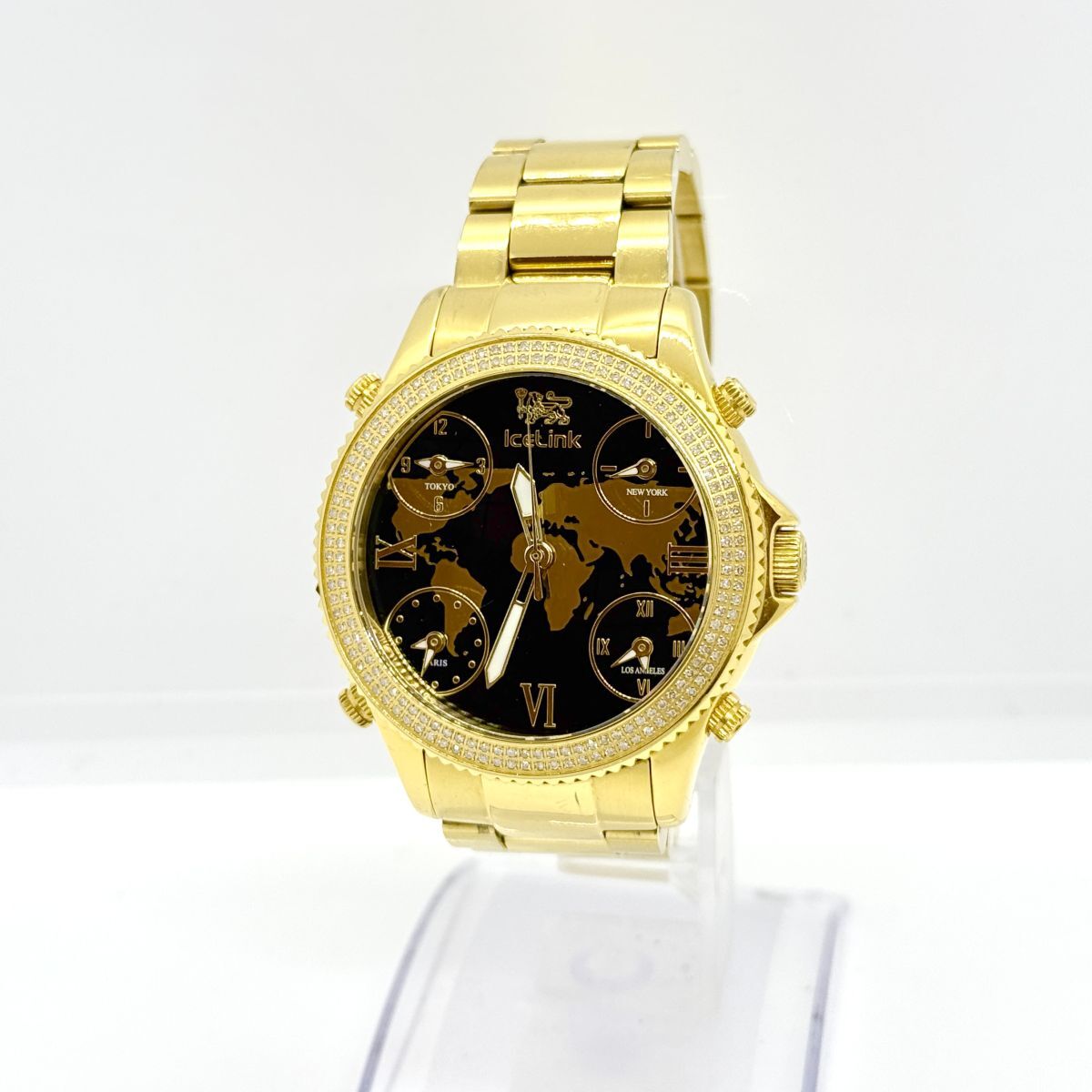 > M4367 ICELINK アイスリンク マルコポーロ 0209 クォーツ 稼働品 メンズ 腕時計 ダイヤベゼル 金メッキ