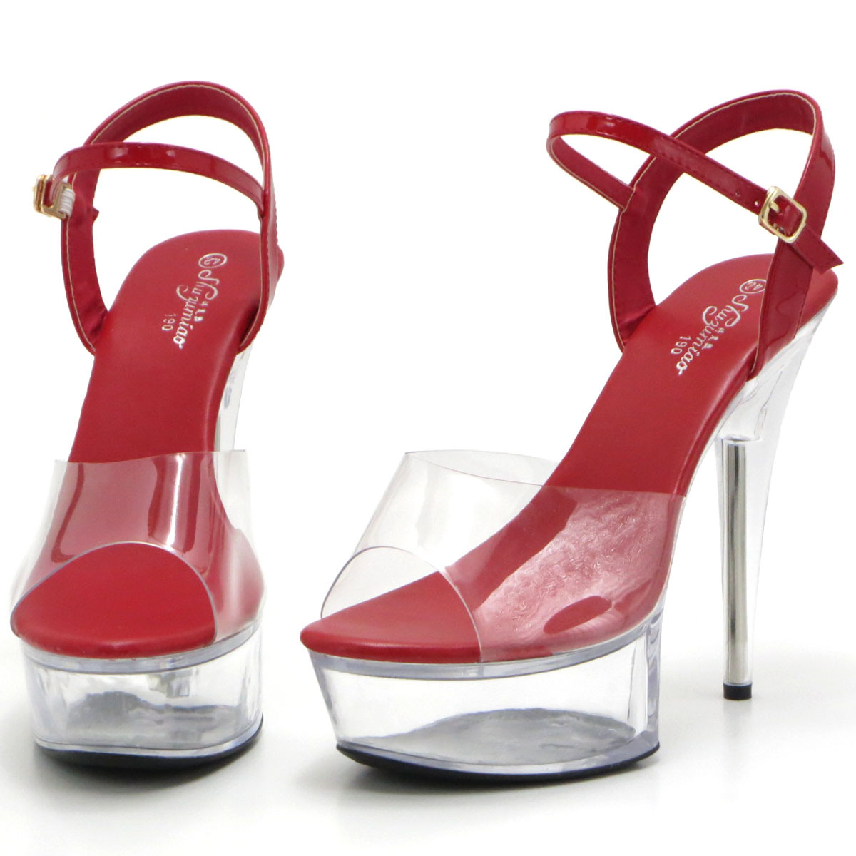- 新品 大きいサイズ サンダル レッド 26cm 132280-42 クリアーソール 前厚底ストーム ハイヒール