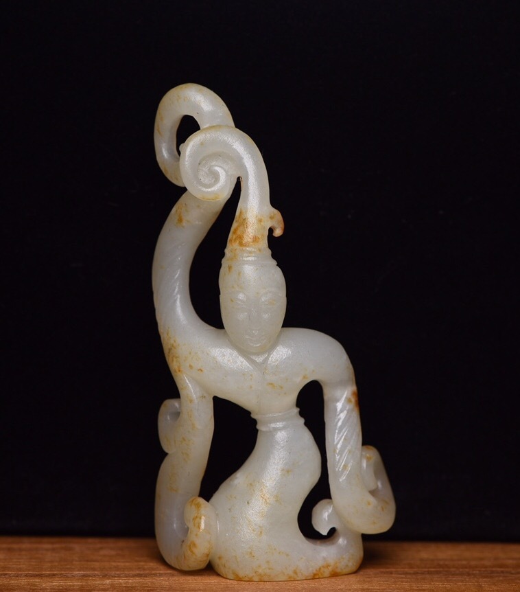 - 【仁】『和田玉製・細密彫・舞人・置物・賞物』極細工 古賞物 中国古玩 古美術 古美味