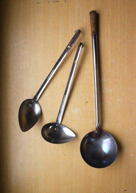 - ▲な-464 お玉&レードル お玉×1 レードル×2 計3点 お玉:全長46cm直径11cm厚さ3cm レードル:全長30cm最大幅10.5cm厚さ2.5cm