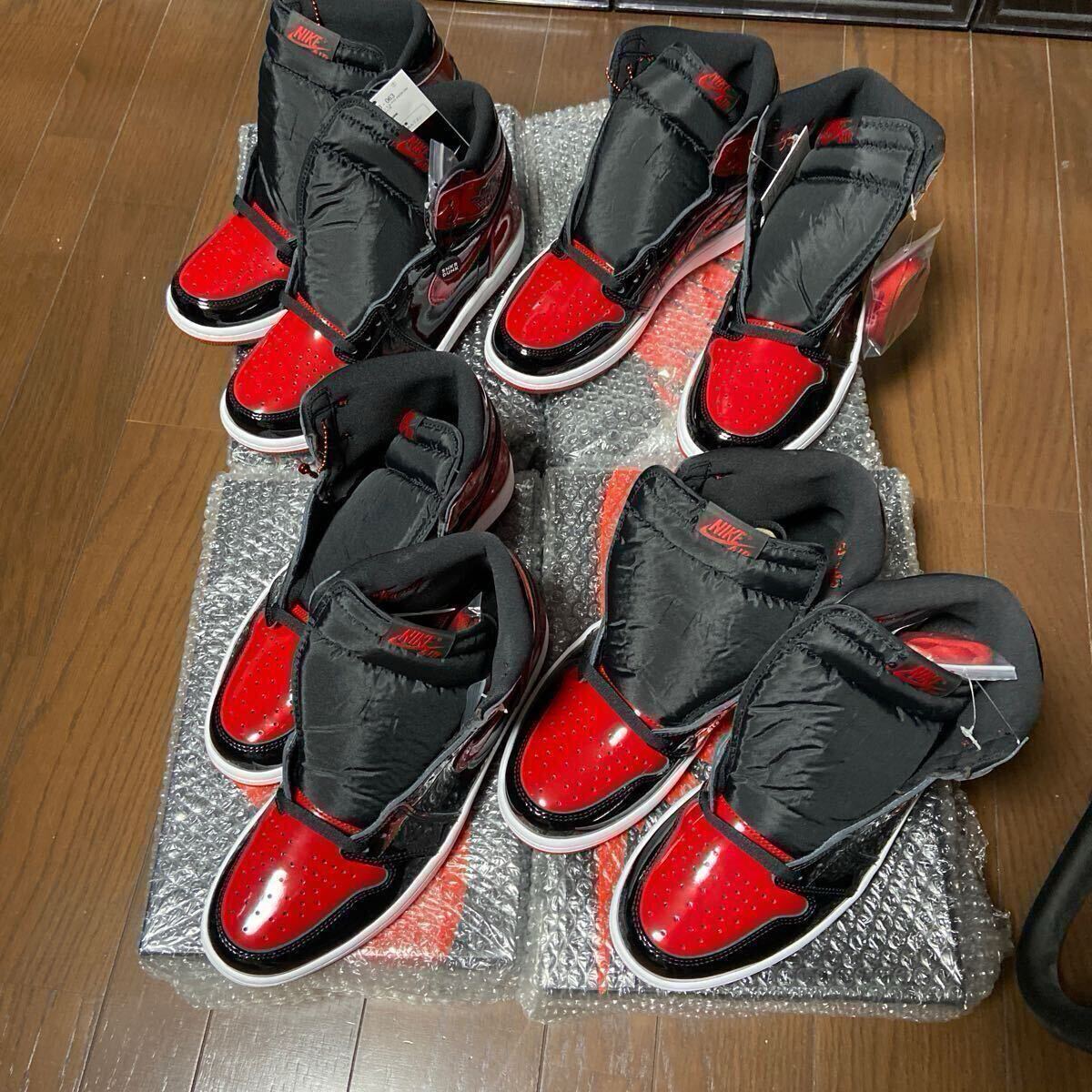 > 未使用 27.5 28.0 4足セットAIR JORDAN 1 パテント ブレット レトロハイOG NIKE スニーカー ナイキ aj1 BRED Bred