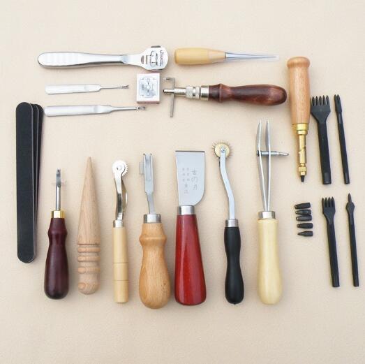- なんと18点セット!! レザークラフト ツール キット 工具 DIY 初心者 手縫い ハンドメイド 革 皮 道具 プレゼント