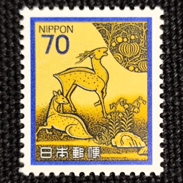 - [25040434] 普通切手【新動植物V/花・貝・文化財】単片「鹿 春日山蒔絵硯箱」70円 1980年発行 美品