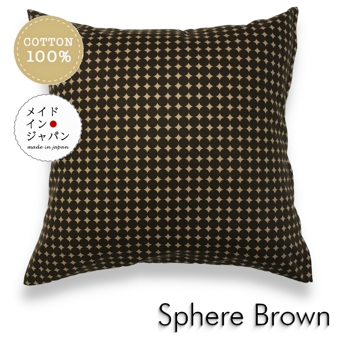 - 大判クッションカバー スフィア ブラウン 水玉柄 60×60cm 綿100%
