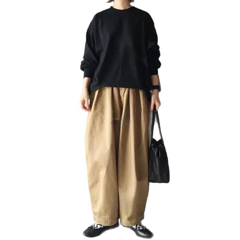 > 新入荷コットン風Aライン黒のシャツとベージュっぽいコットンパンツの2点セット新品大きいサイズすぐ着れるセットアップ