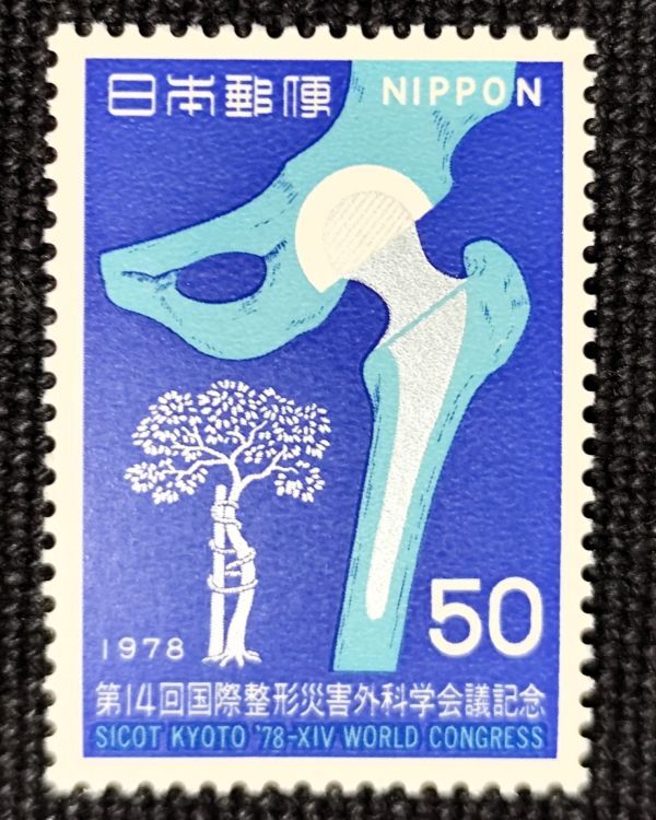 > [25040506]【第14回国際整形災害外科学会記念】単片「人工関節に整形外科のシンボルマーク」50円 1978年発行 美品