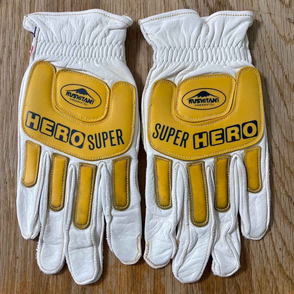 > KUSHITANI super HERO vintage leather gloves size:S used クシタニ スーパーヒーロー レザーグローブ 革手袋 黄色 ユーズド
