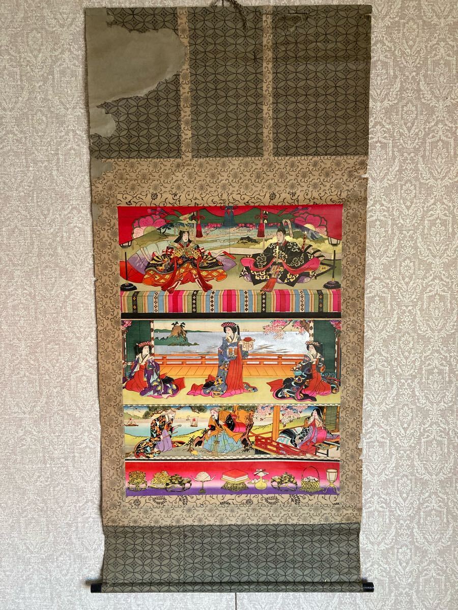 - 骨董品 掛軸 お雛様 おひなさま 桃の節句 縁起物 美術品 掛け軸 雛軸 時代物 日本画