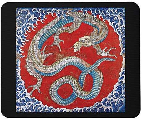 - 葛飾北斎、信州小布施 東町祭屋台天井絵『 龍図 』のマウスパッド(黒地):フォトパッド( 日本の浮世絵シリーズ )