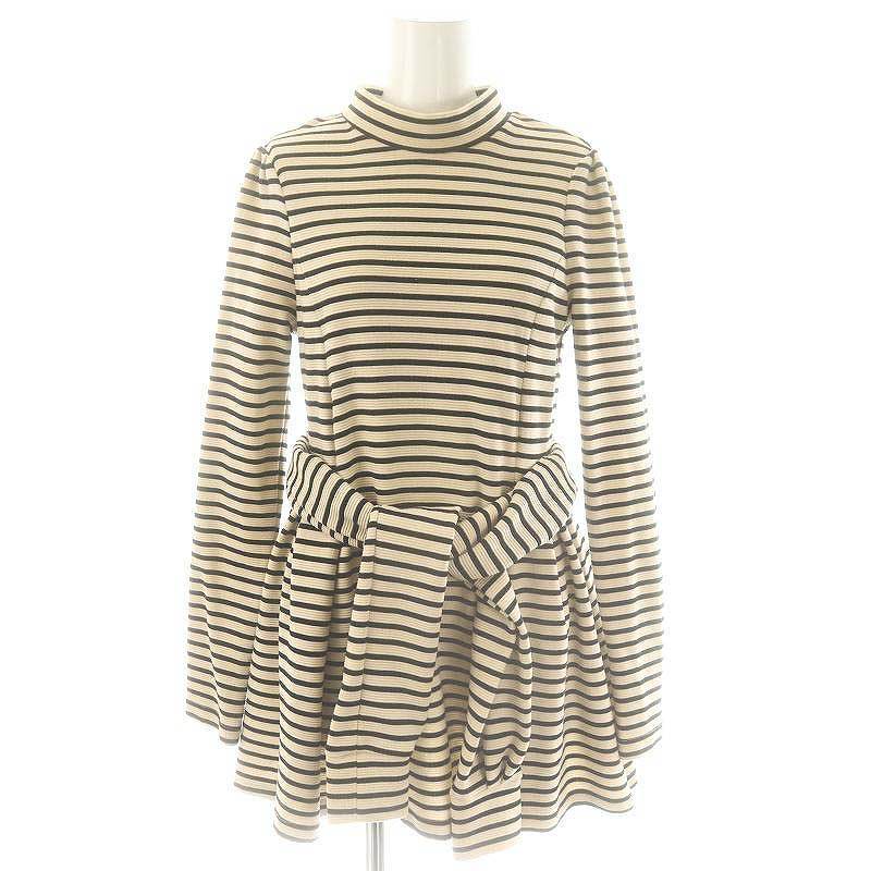 > ココディール COCO DEAL リップル編みボーダー柄フレアチュニック 長袖 2 ベージュ ブラック /HK ■OS ■GY39 ■AX レディース