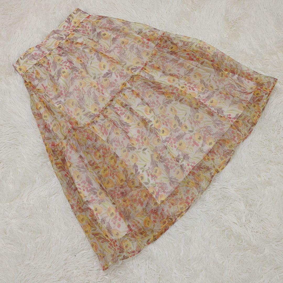 - 《ジルスチュアート》 JILL STUART (S) ティアードシアーフレアスカート 花柄 透け感