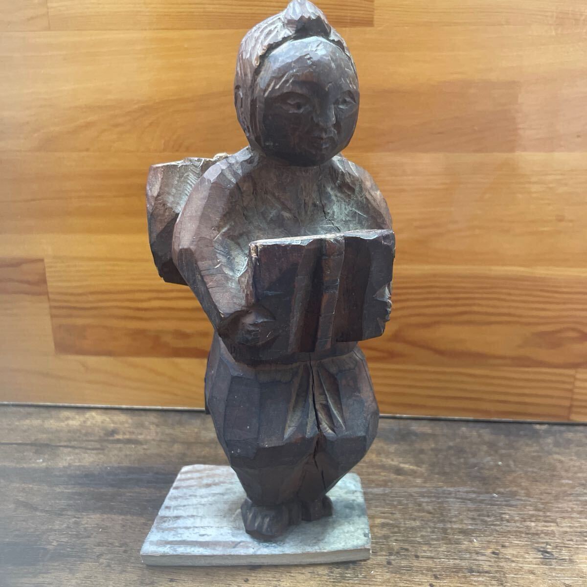 - 木彫り アンティーク 二宮金次郎 骨董 手彫り 置物 木製 オブジェ 縁起物 開運 インテリア