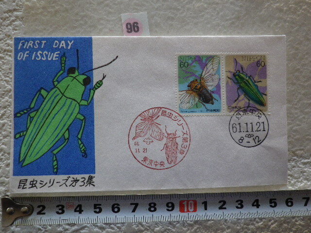 - FDC 昆虫シリーズ 第3集 1986年 2貼2消 解説書有 松屋●96●