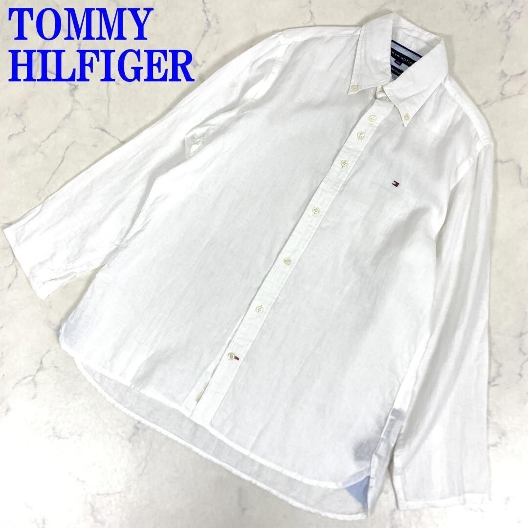 - トミーヒルフィガー 長袖シャツ 白 リネン100%TOMMY HILFIGER ホワイト 麻 S C2504